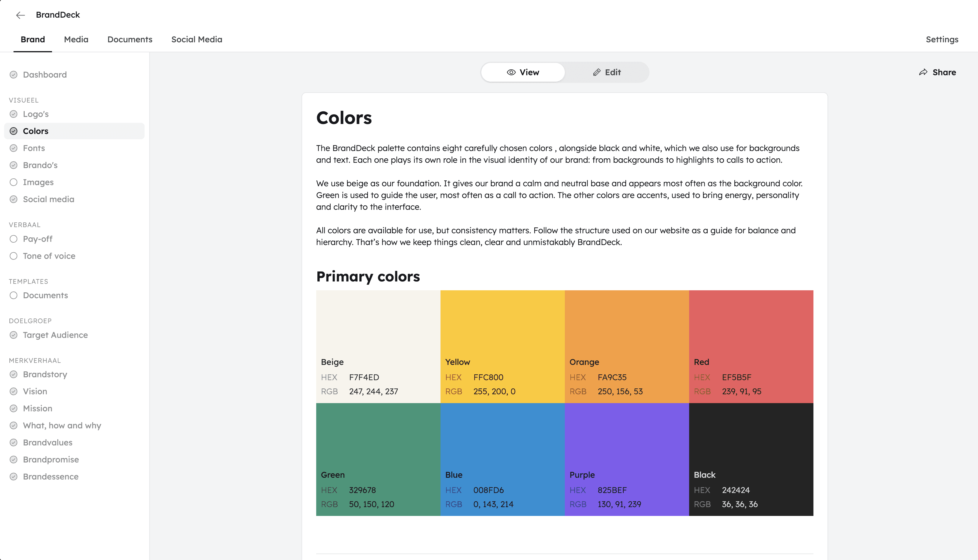 Update your logo, change your fonts, rewrite your messaging and the entire team sees it instantly. No need to resend a PDF or re-explain guidelines. You stay in control, always.